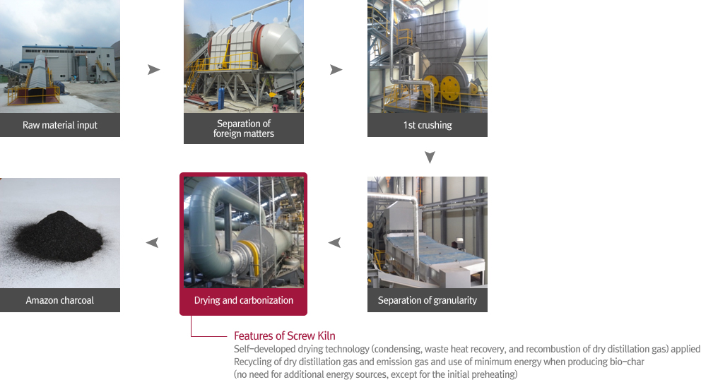 | Others | Previous bio-char had a high pH due to being manufactured at a high temperature, and only about 10% was usable | Our bio-char is manufactured by low-temperature pyrolysis and has a pH of about 6~7, so it is good for plant growth. About 30~50% can be applied |