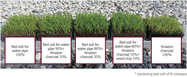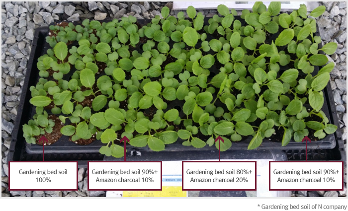 The growing condition of the crop is good in the bed soil where Amazon charcoal 20~30% was added.
