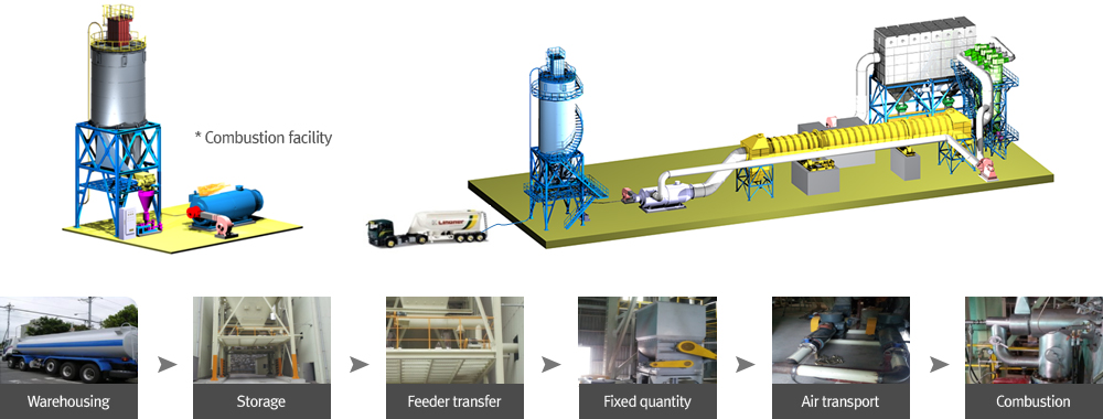 ROTARY DRYER/KILN fuel conversion with the existing facility, fuel replacement from previous LNG or B-C oil KD WP+(LNG or B-C oil) is available with low facility investment cost by changing to a simplified dual-burner combustion system.