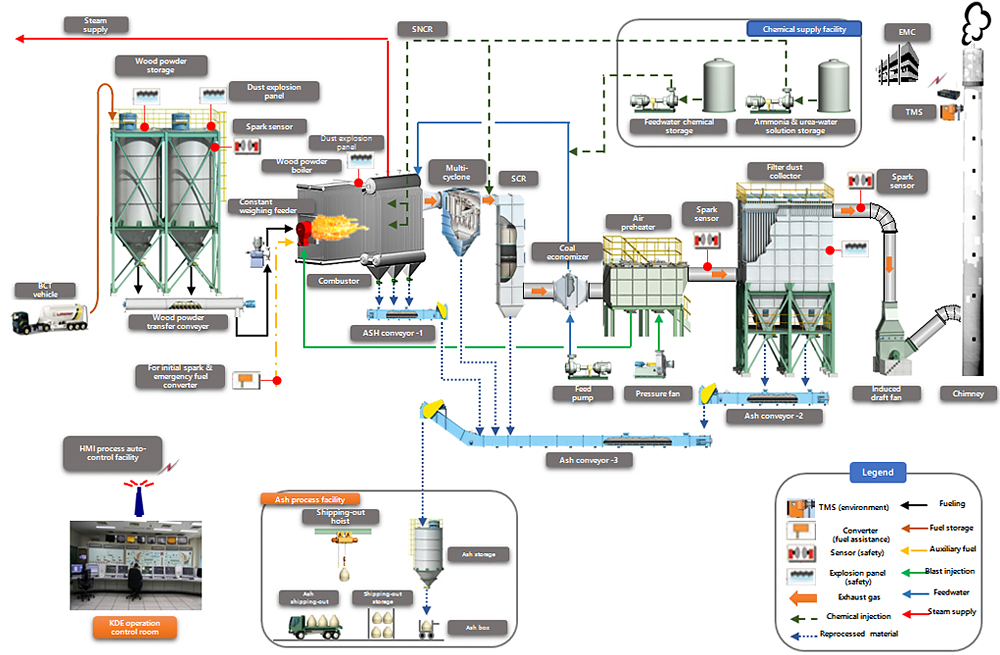 - Full closed system of fuel supply and facility operation to treat ash and dust due to environmental problems.