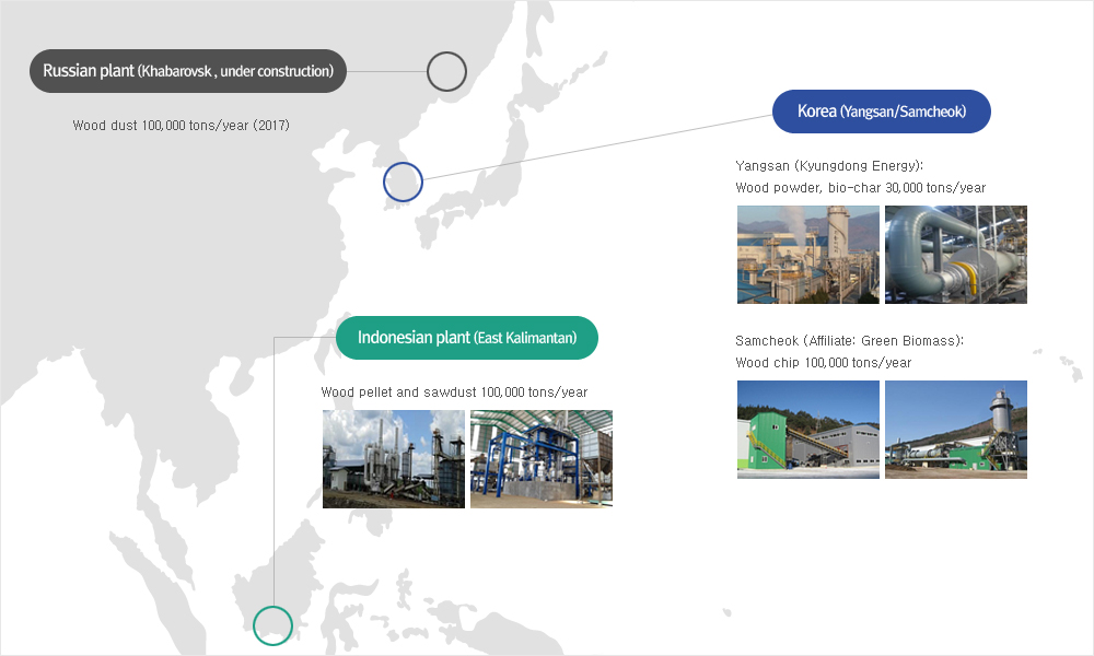 Kyungdong Development is making great efforts to bring the possibility of biomass into reality in the industrial field to achieve a reduction in carbon emissions and to change the energy paradigm into an eco-friendly one. It is completing the vertical systematization of the business, from the supply of biomass fuel to product manufacturing and the supply and operation of fuel facilities, including the completion of a wood chip plant in 2013, a wood powder plant in 2014, and a wood pellet plant in Indonesia in 2015.